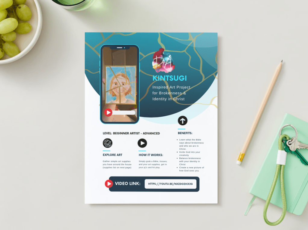 This printable resource kit includes the art supplies list for this project plus extra tips & tricks, reflection questions for journaling, Scripture references, and the always-helpful “How to Make a Portrait” template. The group version also includes notes for the facilitator and group discussion questions.